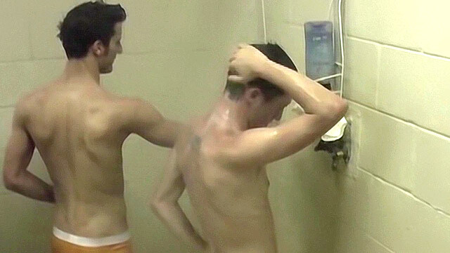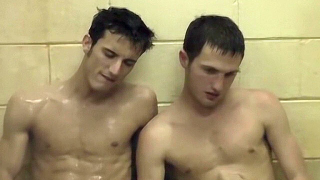 KB and JJ are a couple of horny young guys who jack off a lot, so it's probably not so surprising that they're so eager to help each other out with those long penises when the two have some alone time in the showers! Their curiosity sure gets the better of them, making out and stroking their buddy's length, sucking cock and spurting hot loads!