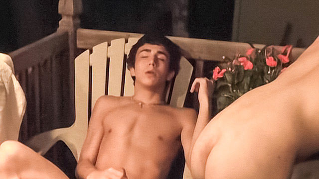 CT is amazed by that tight and hot hole his friend LT has for him. The boys continue their private porch party with his rampant young cock thrusting in and out of his friend's pert little ass, his heavy balls swinging and slapping around while he fucks his friend in every position and finishes up with a jerked out shower of semen erupting over LT's back. With his cock spent he's happy to relax and be the target for his friend's jerked out splashes!
