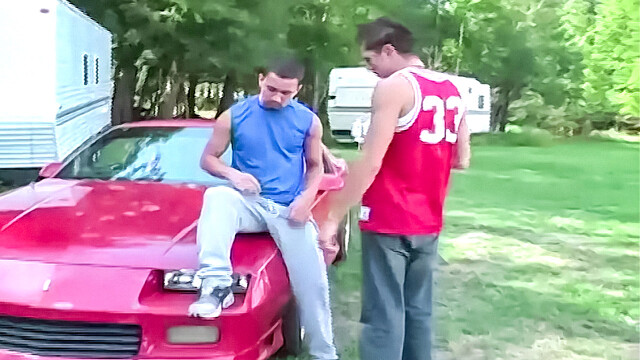 After a little naked working out with the boys in the open, and lots of cock on display, Jonathan and Julio decide to go for a drive, but it's Julio that's doing all the driving. From the looks on Jonathan's face, he doesn't seem to mind too much. Soon those big juicy cocks are being exchanged in a delicious session of friendly sucking!