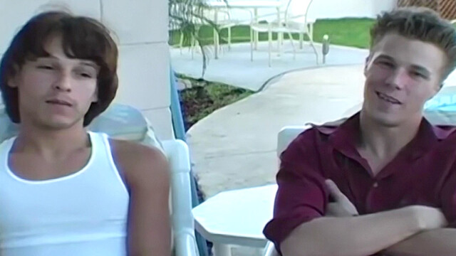 Xavier and Dakota, two toned twinks, get comfortable on the pool deck. They shed their clothes, take turns sucking and then head inside to continue their fun.